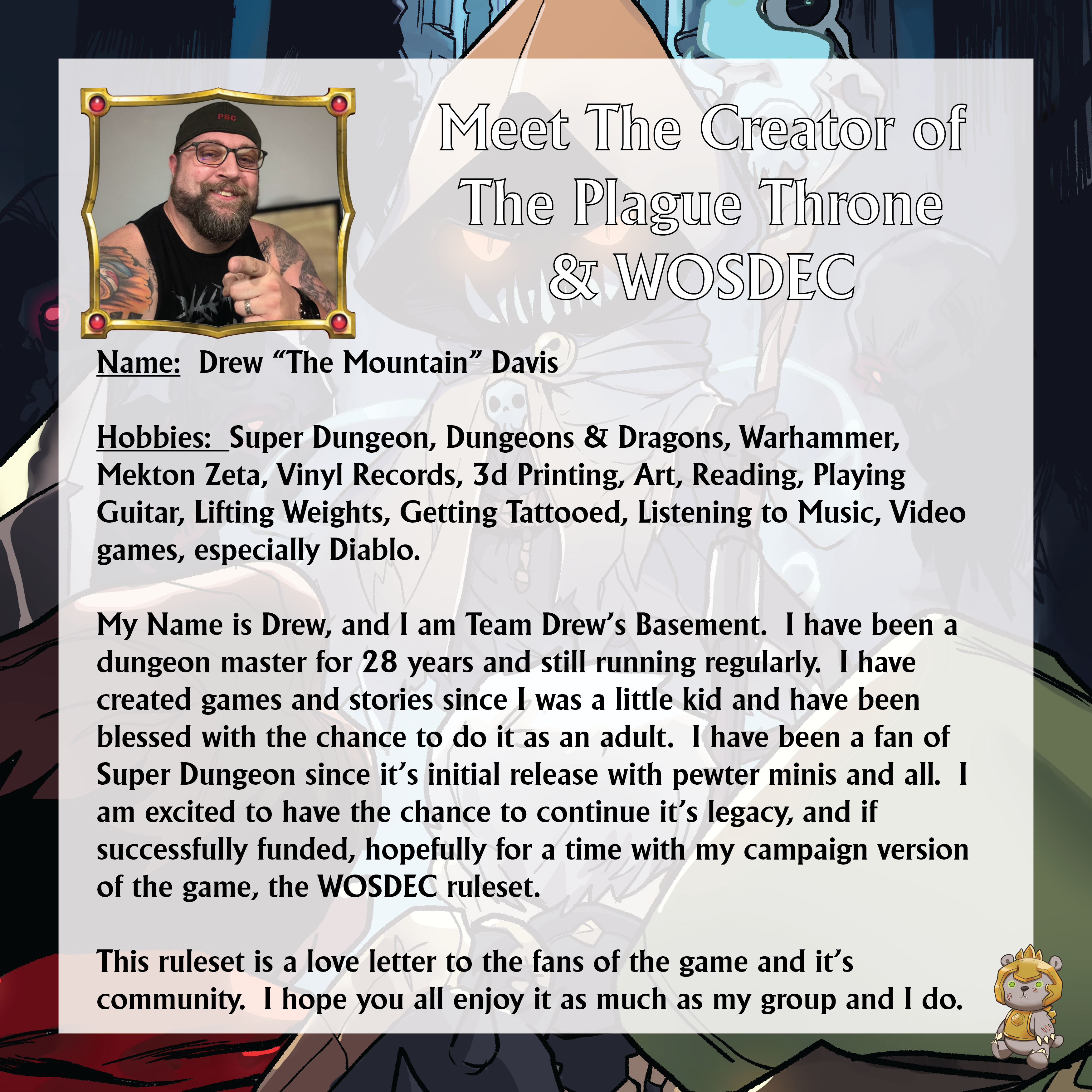 Website admin. Just a big fan of Super Dungeon and what Drew wanted to do with WOSDEC.